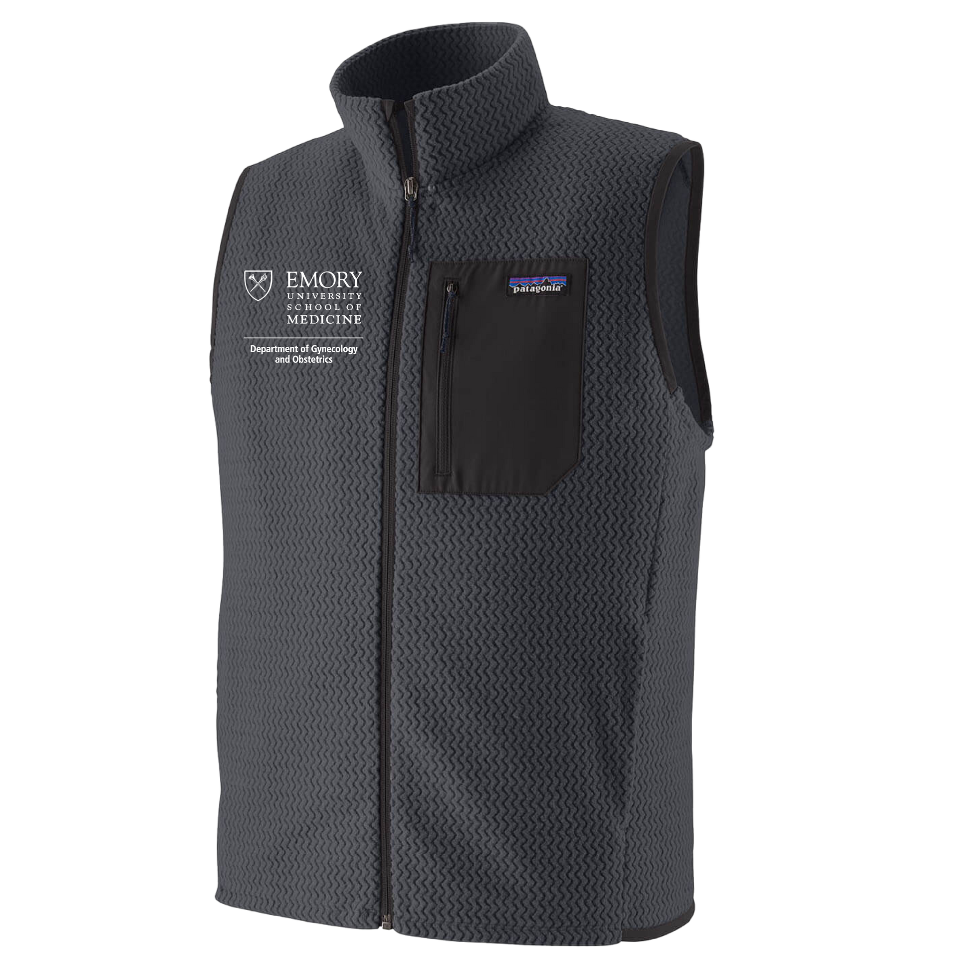 Emory OBGYN logo embroidered on the right chest and the option to personalize underneath the logo.